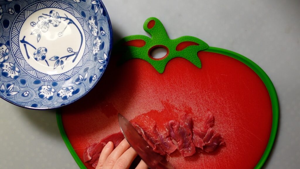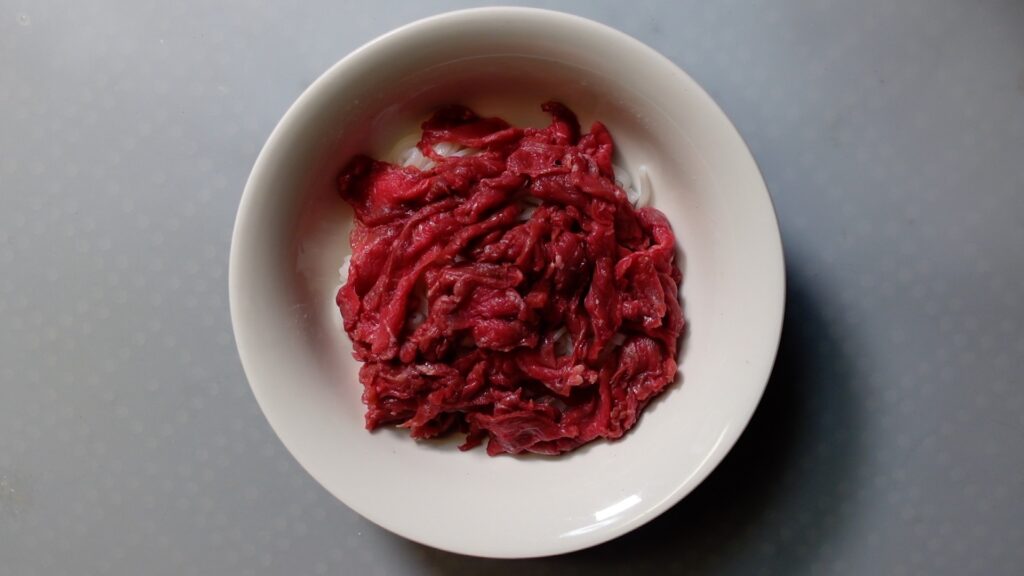牛もも肉は薄くスライスします。