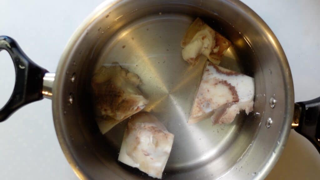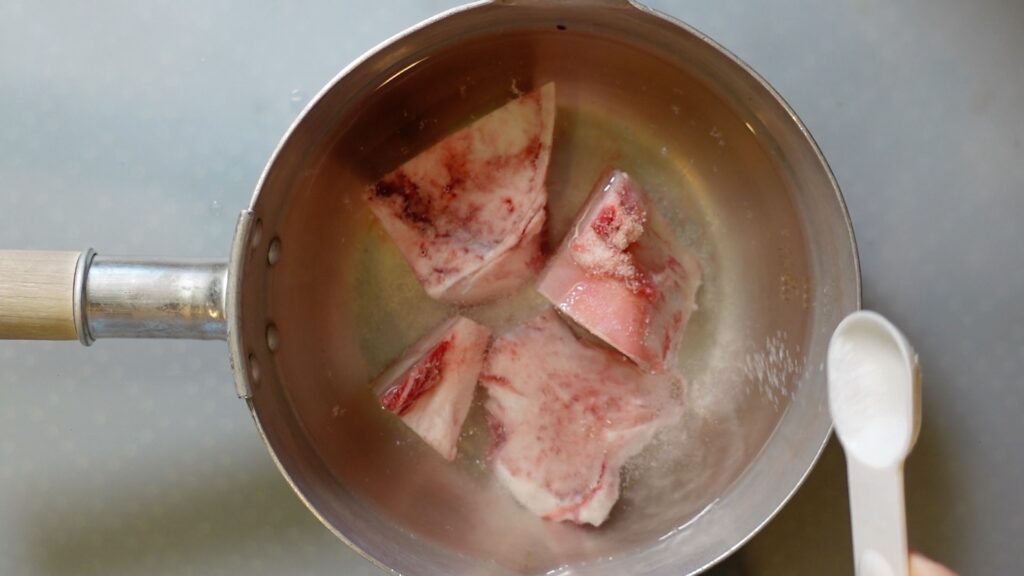 牛骨は下茹ですることで臭みが消えます。