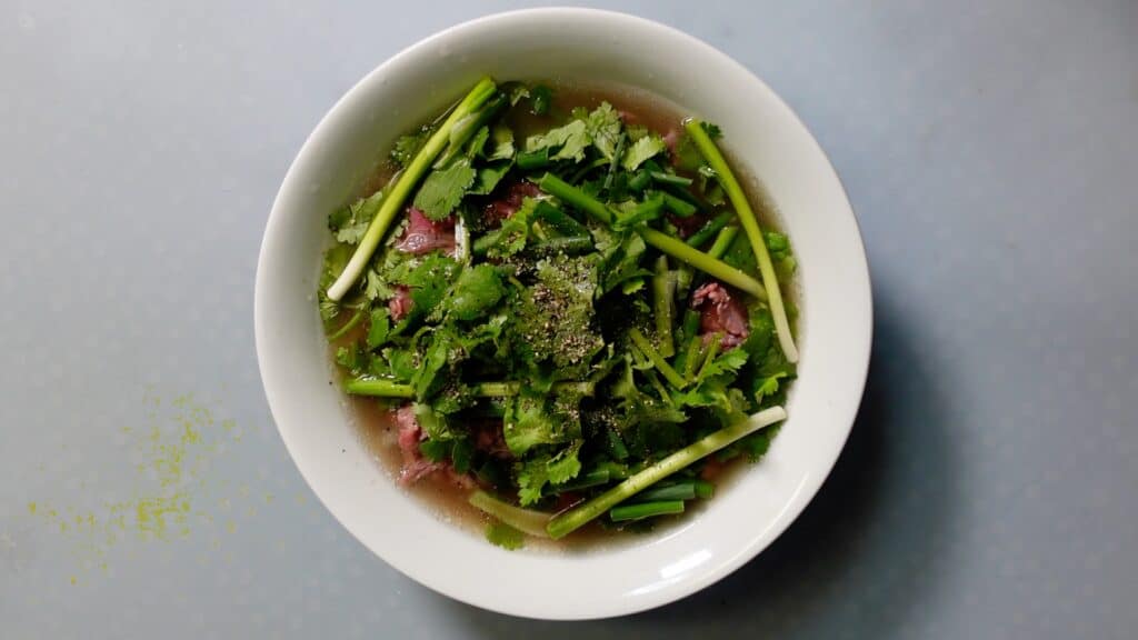 最後に青ネギとパクチーをのせたら完成です。