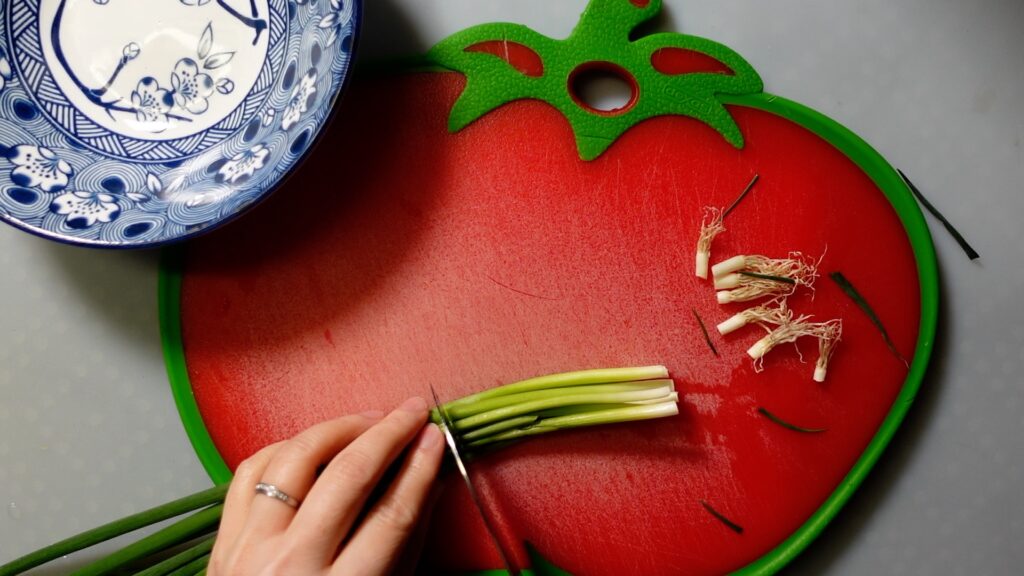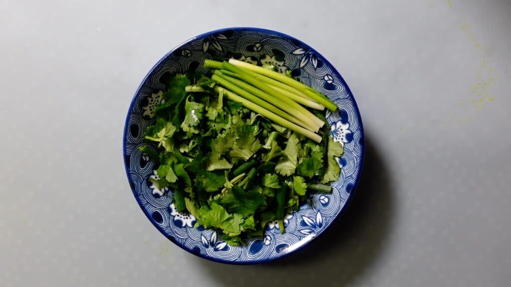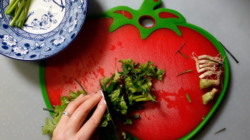 青ネギとパクチー切り方は好みのやり方でOKです。