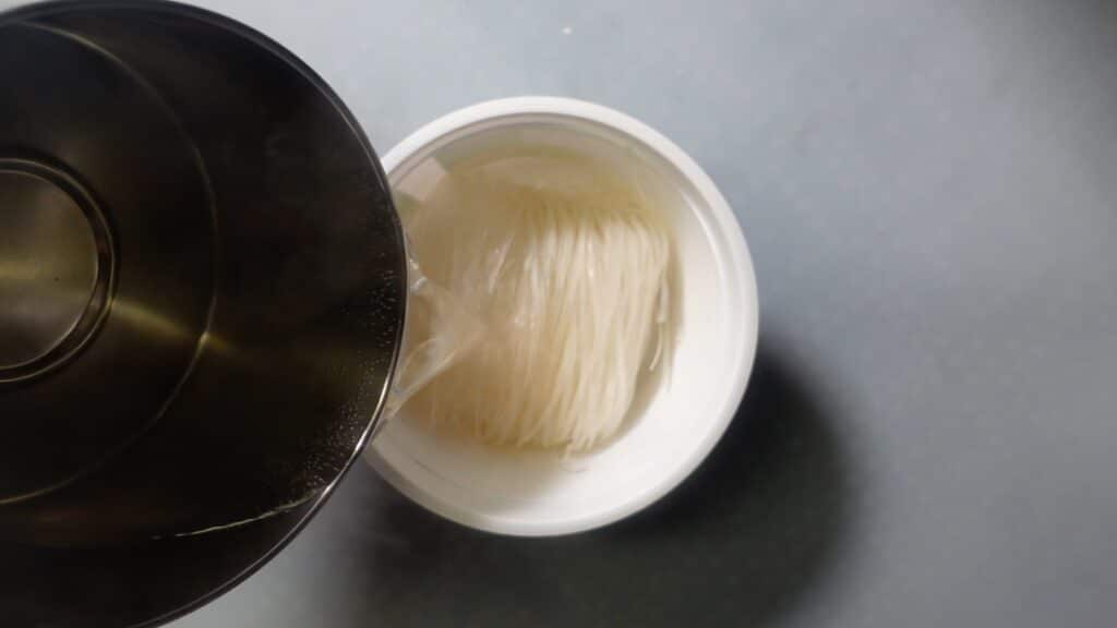 ポイントは、麺を戻すためのお湯とスープ用のお湯に分けるところです。