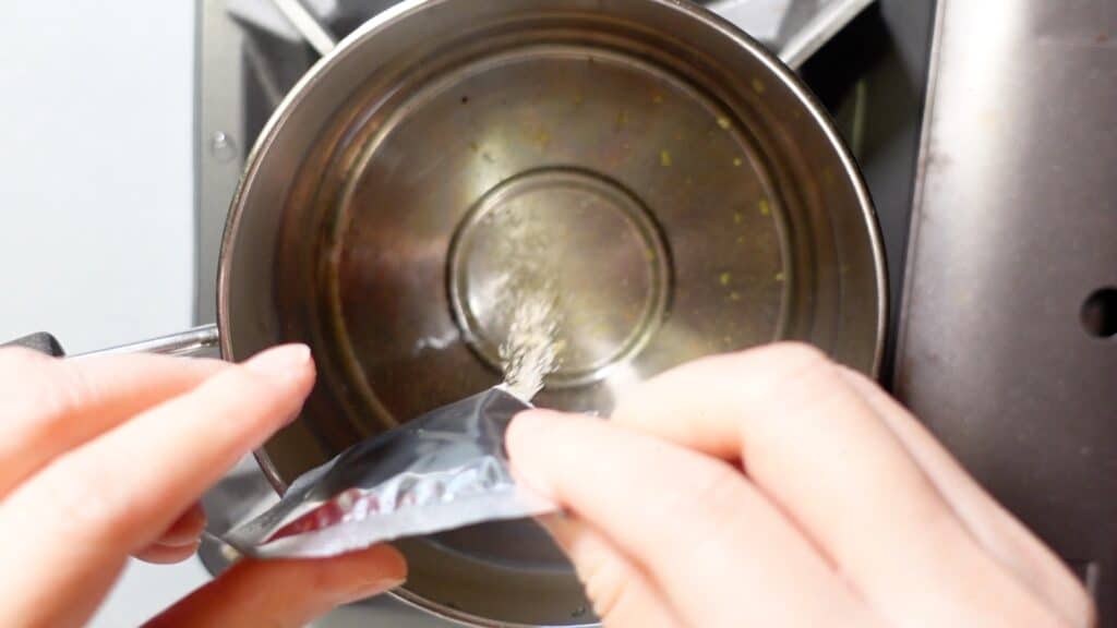 水200ミリリットルに付属の調味料を入れて、沸かします。