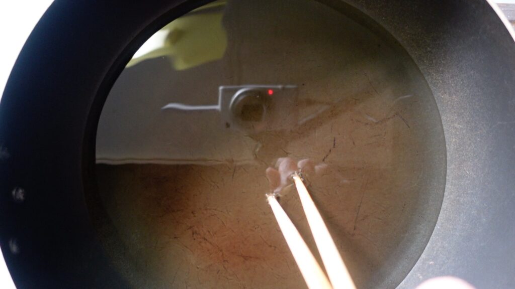 箸を油に入れた時、小さな泡が出てきたら、適温です。