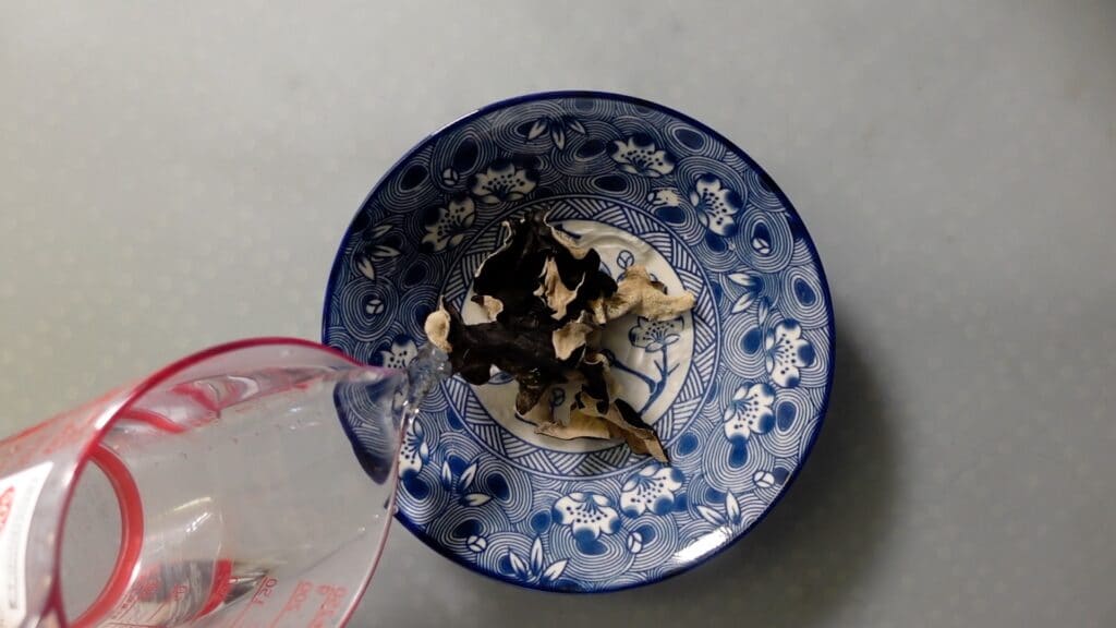 乾燥キクラゲ10グラムをお湯で戻します。