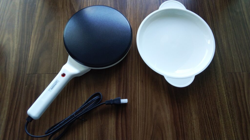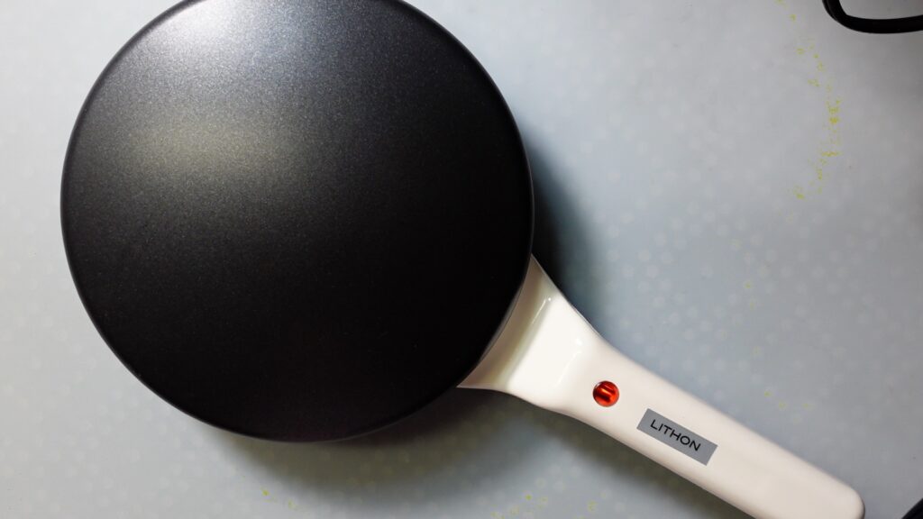 クレープメーカーを加温します。私の使っているクレープメーカーでは加温中はランプが点灯し、焼ける温度まで到達するとランプが消えるようになっています。