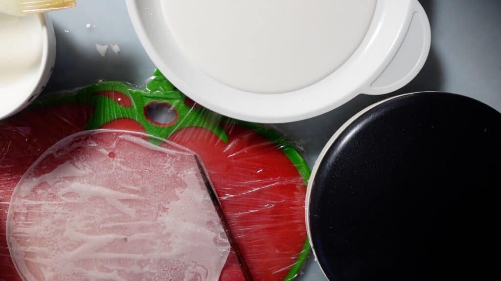 ラップをかけるほとで、生地がまな板にくっつかなくなります。