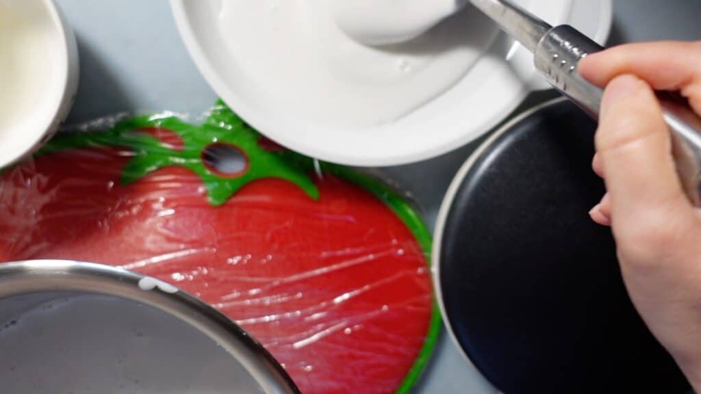 上から生地を流し込むことによる問題はこれで解消されます。