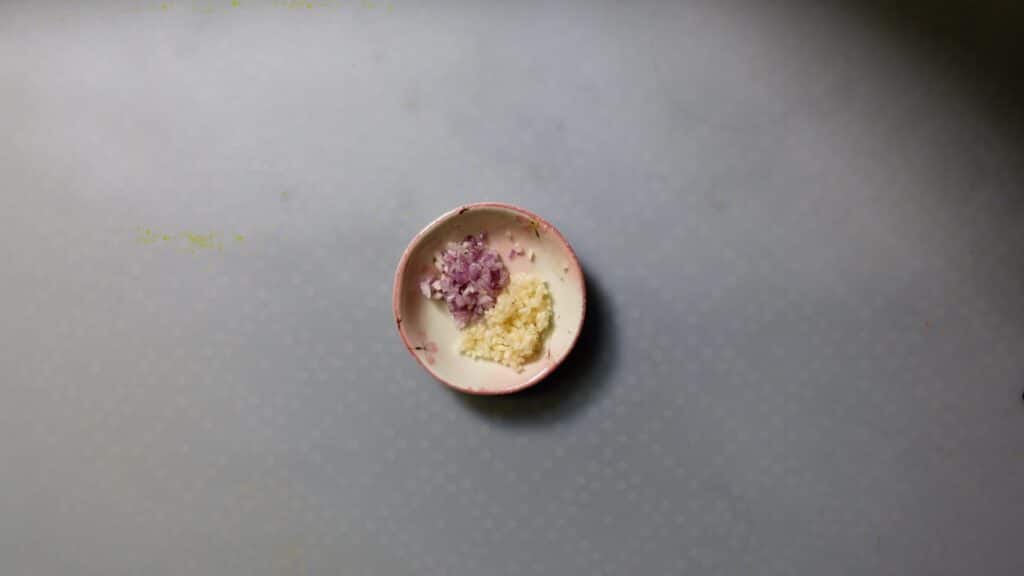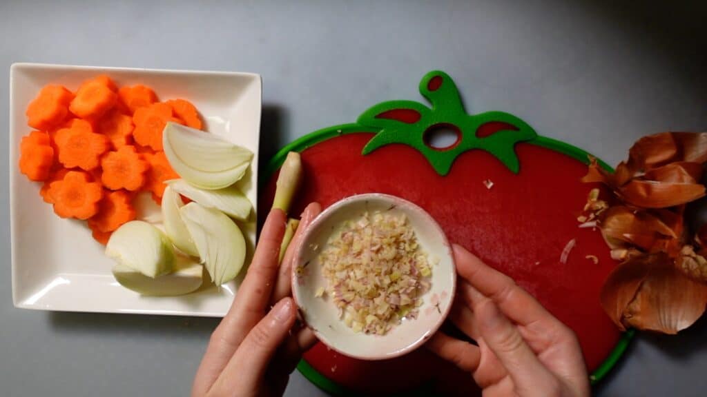 ホムデン1個、ニンニク1片もみじん切りにします。