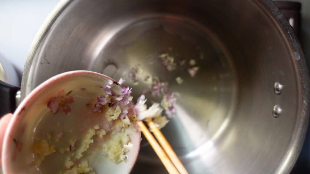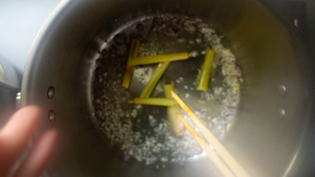 香りが出てきたら、叩き潰したレモングラスを入れます。