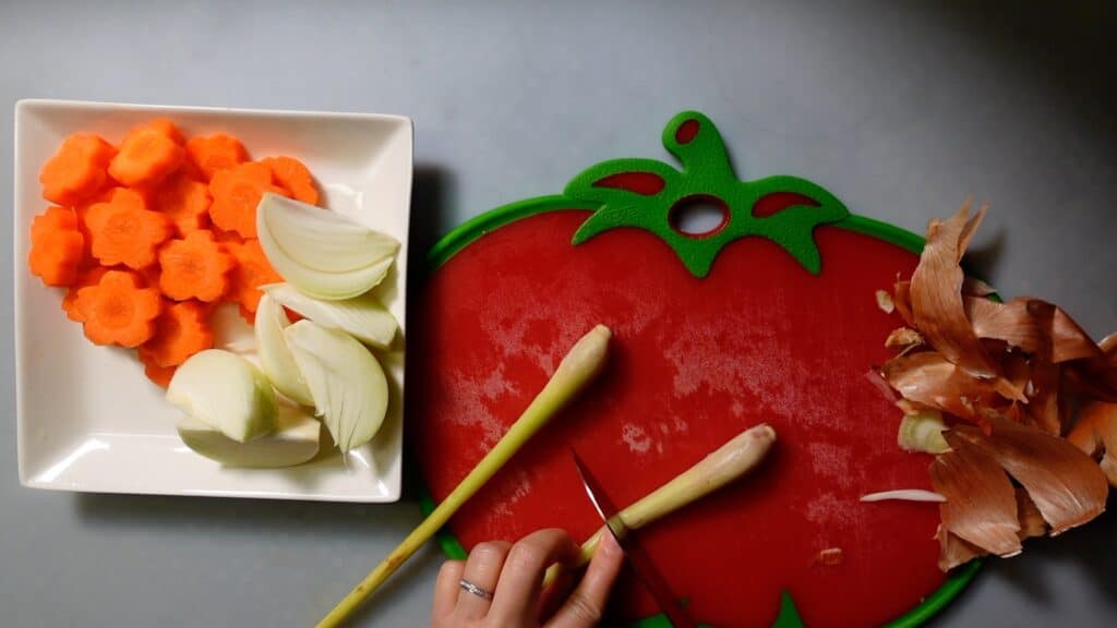 レモングラスは2本のうち1本は、10cm程度を使ってみじん切りにします。