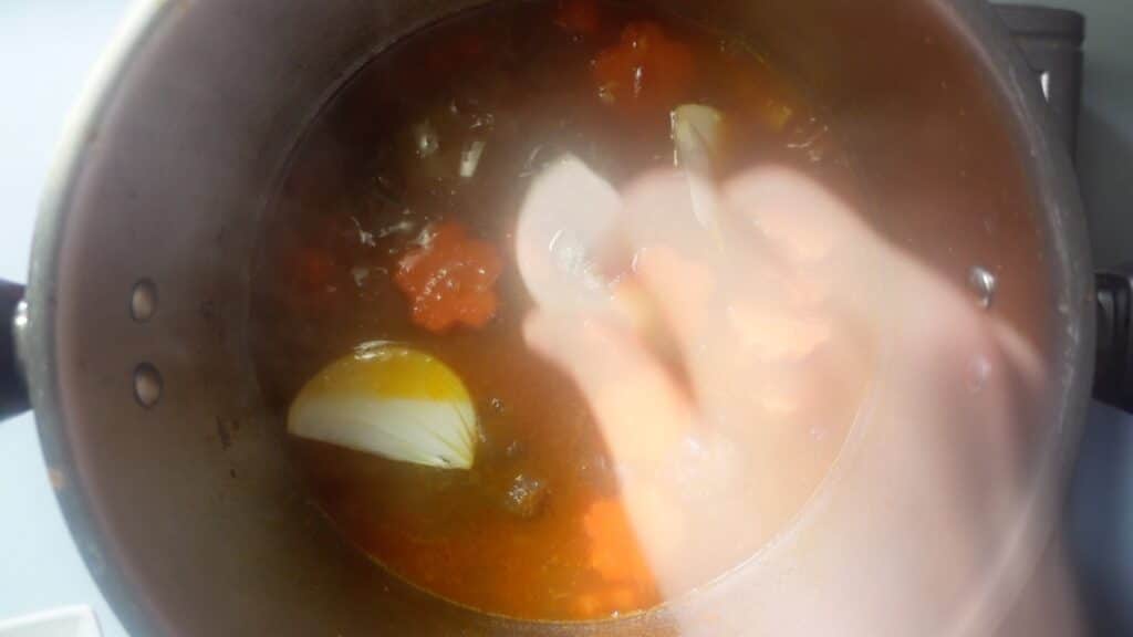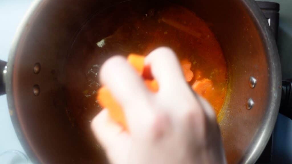 煮立ってきたら、人参を入れてさらに10分ほど煮込みます。
