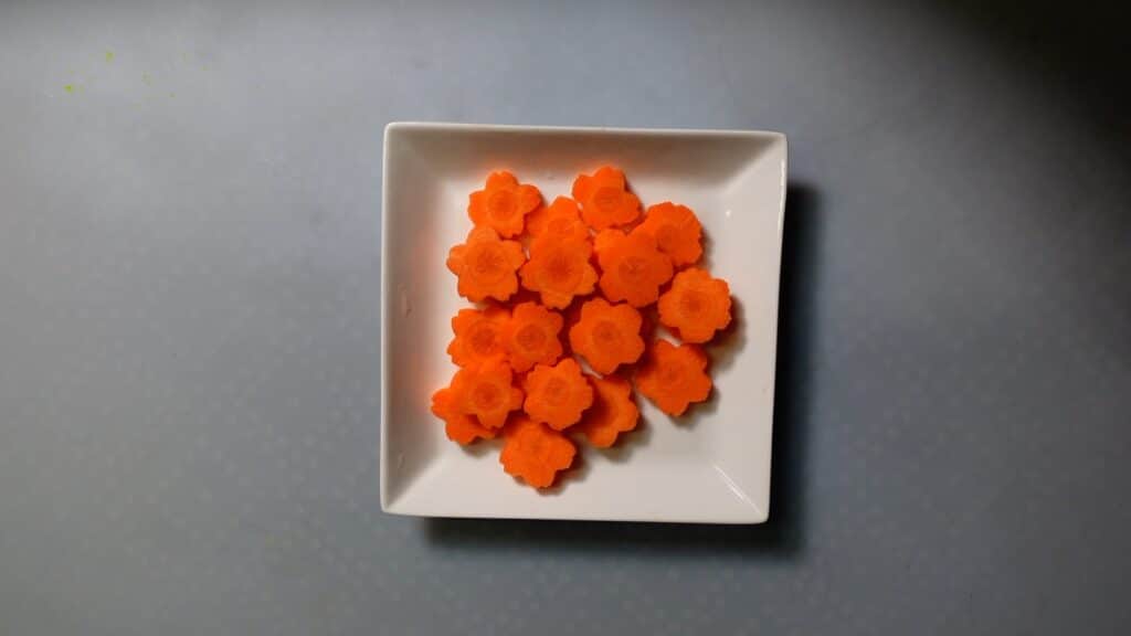 人参は皮を剥き、1cm暑さに切った上で、型取りする。