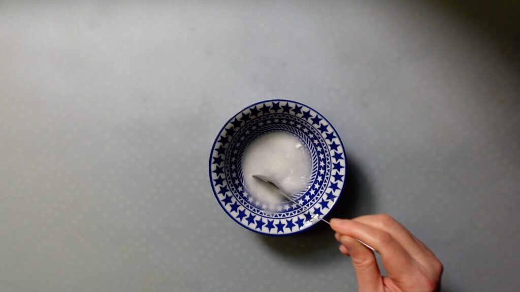片栗粉小さじ1、水大さじ2で、水溶き片栗粉を作ります。