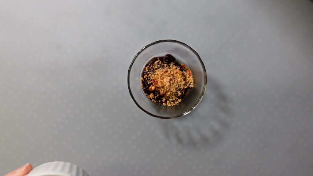 さらに、砕いたピーナッツを振りかけたら、つけダレの完成です。
