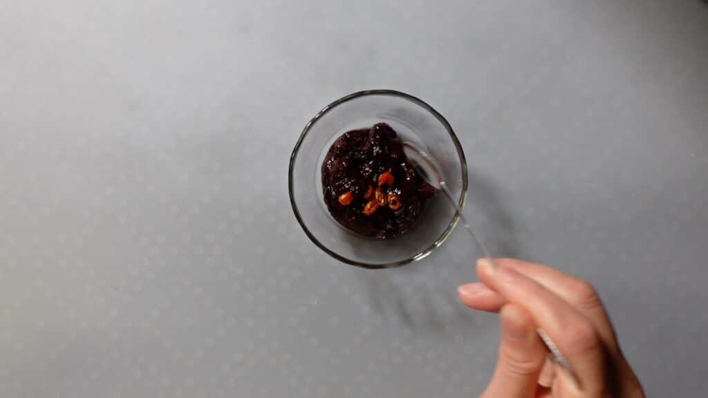 つけダレ用の小皿に入れて、唐辛子適量を入れます。