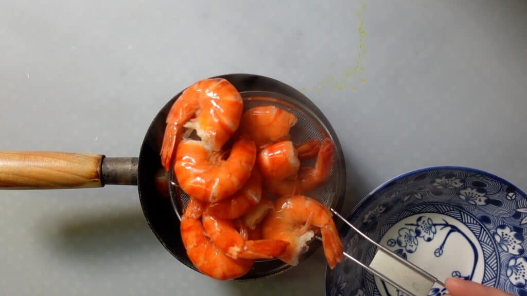エビを茹でます。