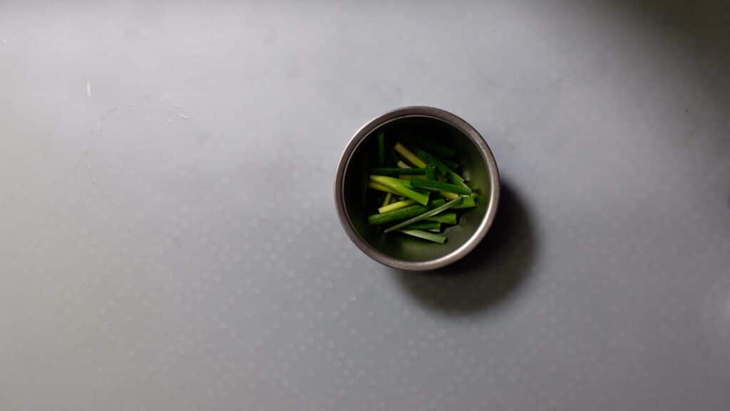 青ネギは3センチほどの長さに切っておきます。