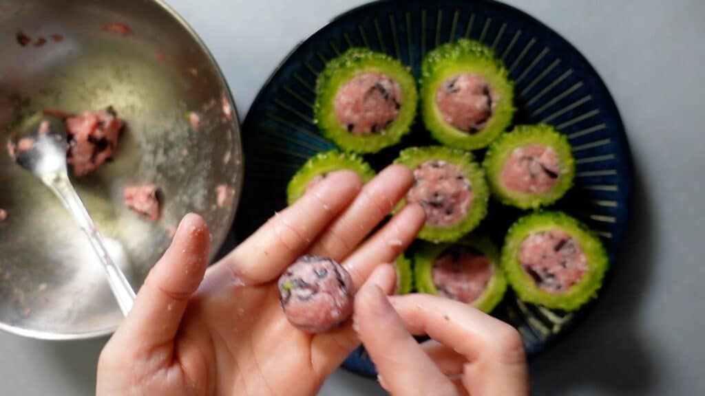 どうしても半端な具が出てしまいますので、丸めて肉団子にしましょう。